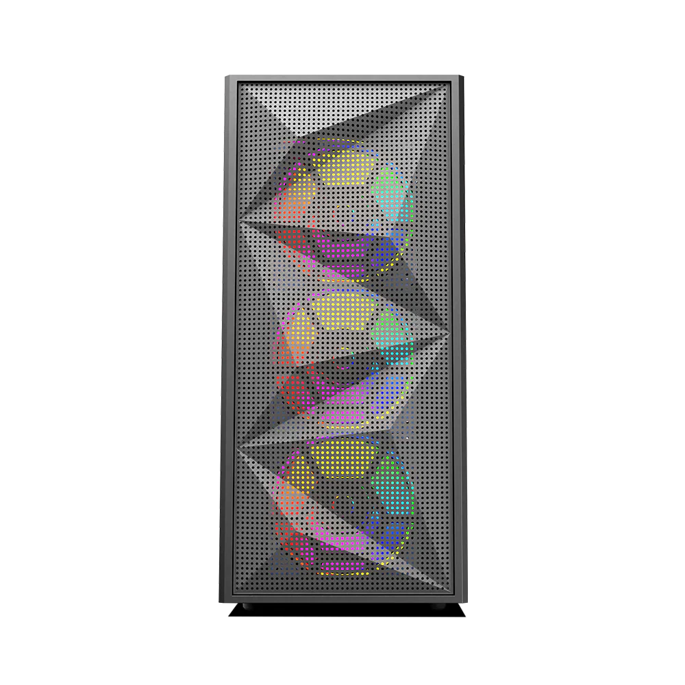 RGB front panel design delivers vibrant lighting effects, adding style and presence to gaming builds,