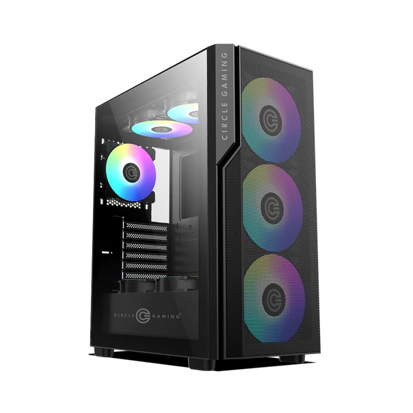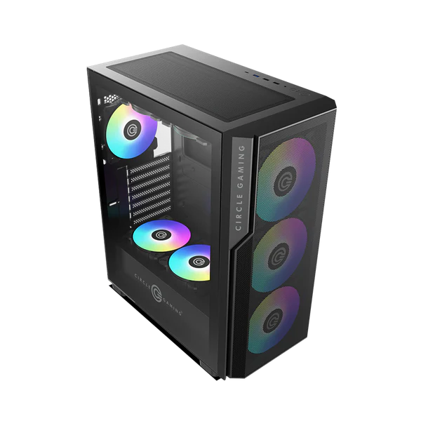 Circle Eliminator X5 Type-C Mid-Tower Gaming Cabinet – Tempered Glass, ARGB Front, USB 3.0 + USB Type-C – Black