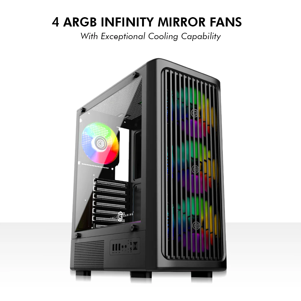 Circle Amazer X2 ARGB ATX Gaming Cabinet – Tempered Glass, ARGB Front Panel, USB 3.0 – Black