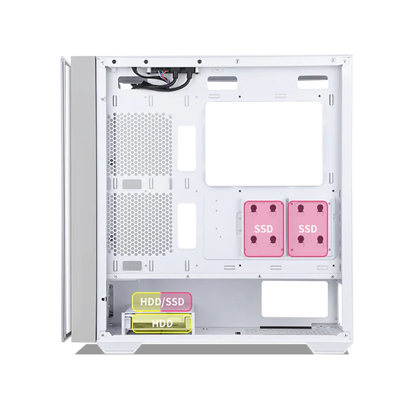 Versatile mid-tower layout supports ATX, Micro-ATX and Mini-ITX motherboards along with full-length graphics cards and multiple SSD/HDD storage bays,