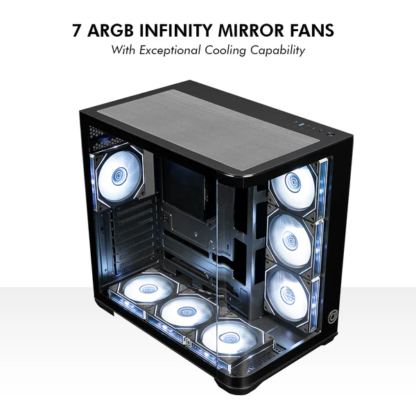 Airflow-optimized chassis supports multiple intake and exhaust fan positions to maintain balanced cooling,