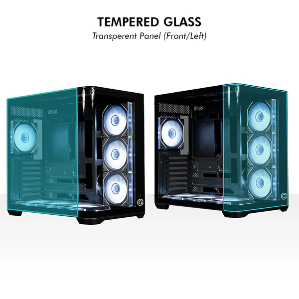 Tempered glass side panel gives a full view of components, lighting and organized cabling while staying sturdy,