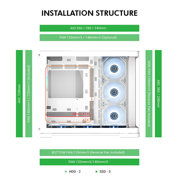 Supports ATX / Micro-ATX / Mini-ITX motherboards