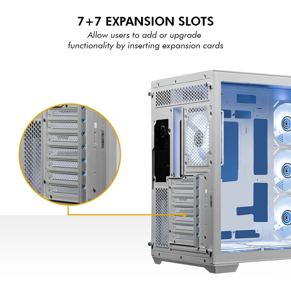 Airflow-optimized chassis layout supports multiple intake and exhaust fan placements to keep temperatures balanced,
