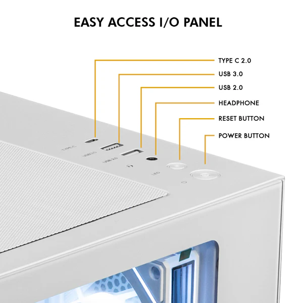 Circle Lucid AX Curve White Mid-Tower Gaming Cabinet – Curved Front, Tempered Glass, USB 3.0, ATX Support