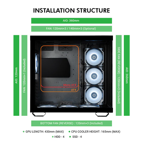 • Multiple fan mounts for smooth and efficient airflow