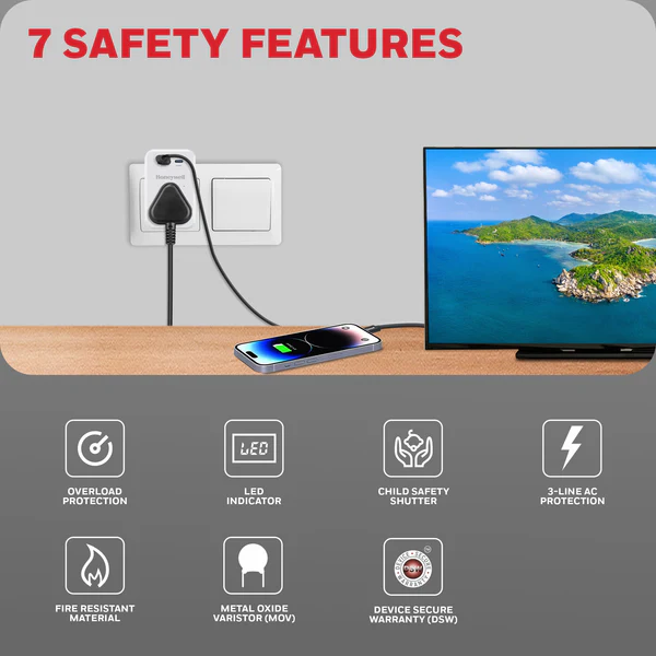 With its clean white matte finish, safety-focused design, and long-term coverage including 3 years warranty + device secure warranty up to ₹30,000, this is an excellent compact spike guard for home, office, and travel use.