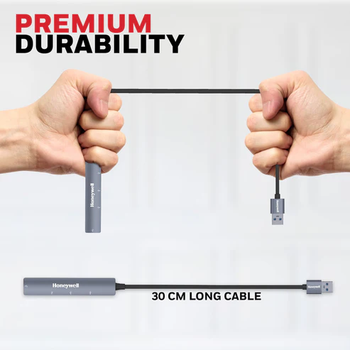 With a 30cm cable, you get flexible placement and clean desk management. It is a plug & play hub, meaning no drivers or setup are required—simply connect and start using it instantly. Built with a premium metallic finish and nickel-plated connectors for stable performance, the Honeywell Momentum hub is a reliable everyday accessory for office, home, and travel use.