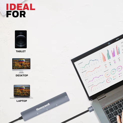 The Honeywell Momentum 4 Port USB Hub is a compact and ultra-slim connectivity solution designed to expand your device ports instantly. Perfect for modern laptops and desktops with limited USB slots, this hub converts a single USB port into 4 usable USB ports, allowing you to connect multiple accessories at the same time.