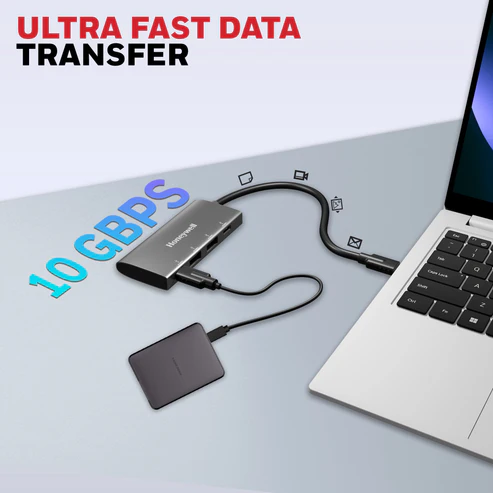 With a compact 30cm cable length, it offers flexible placement on desks and workstation setups, while remaining travel-friendly for users on the move. Built with Honeywell’s trusted quality, this hub is an ideal choice for home, office, and professional environments where high-speed expansion is required.