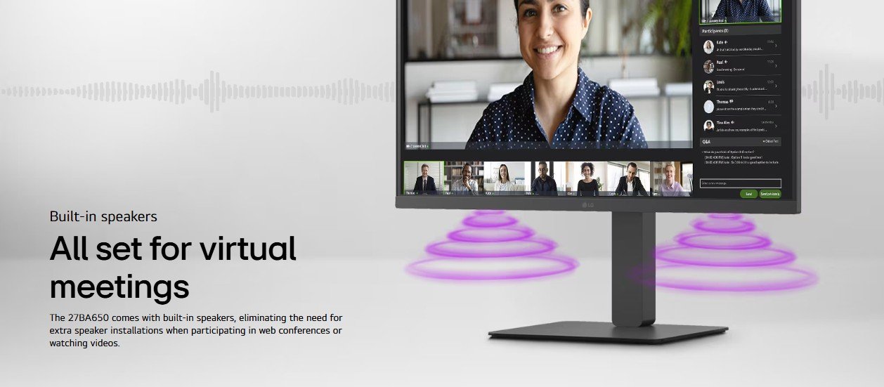 LG 27BA650‑B 27″ QHD IPS Monitor – 75Hz, USB‑C (65W PD), Built‑In Speakers, Ergonomic Stand